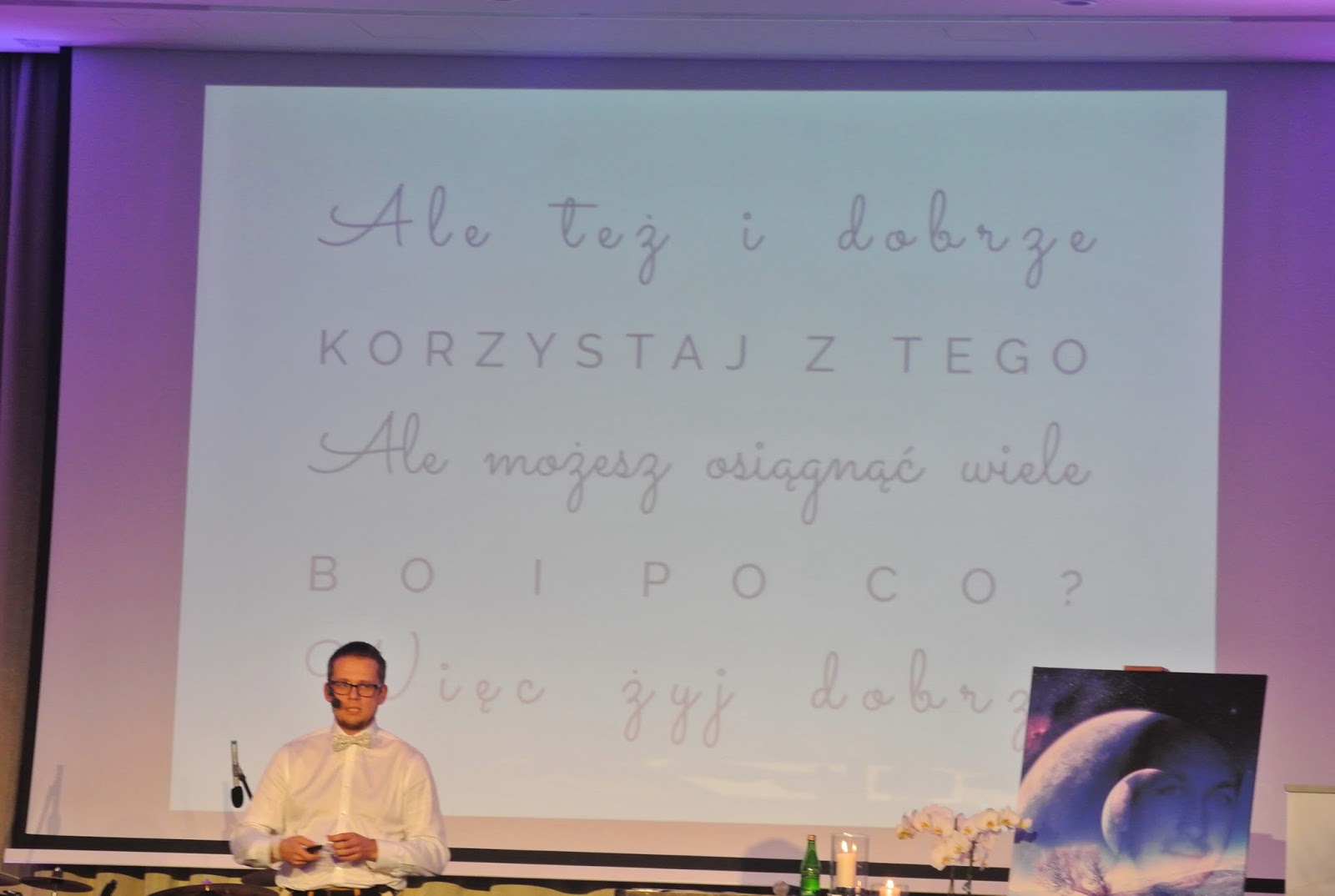 Następnie na scenie pojawił się Grzegorz Turniak, który przedstawił badania amerykańskich naukowców mówiące o tym, że na nasze poczucie szczęścia wpływ mają geny i wychowanie, potem warunki materialne oraz nasze nastawienie i działanie. O ile nie mamy wpływu zupełnie na geny, tylko częściowy na warunki materialne to na pewno od nas zależy nastawienie i działanie, a to już bardzo dużo!